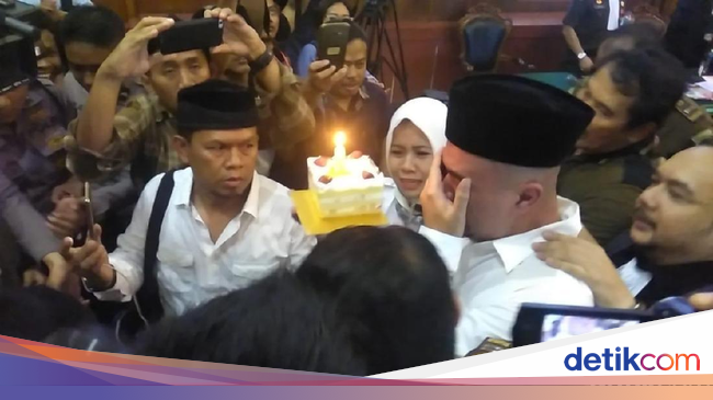 Momen yang ditunggu-tunggu Dhani akhirnya tiba juga. Ketika persidangan diistirahatkan, suami Mulan Jameela itu bisa meniup lilin ulang tahun untuk Shafeea. Alih-alih ingin menyampaikan sukacita atas bertambahnya usia Shafeea, mata Dhani malah berlinang.