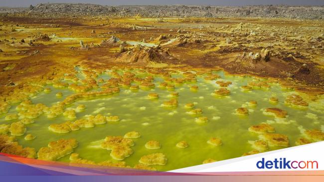 Dikutip detikINET dari Science Alert, ilmuwan meneliti sebuah lokasi ekstrim kolam hydrothermal yang berada di Dallol, Ethiopia. Tempat ini berisi air yang super asam dan sangat asin, berwarna hijau, kuning, orange dan coklat.