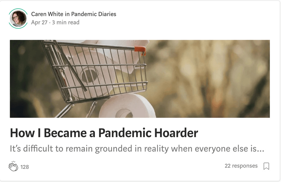 When I got home, I logged on to my laptop and started reading articles on the pandemic. I had stopped reading most pandemic related articles weeks ago because they were upsetting me too much. I couldn't sleep. I couldn't concentrate. I needed to distance myself. But I knew that the pandemic had something to do with the bare shelves in the baking aisle so I exposed myself to the turmoil once more.