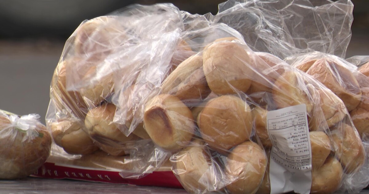 On Monday, the tables were full of bread. The tables are usually replenished about every other day with a variety of food.